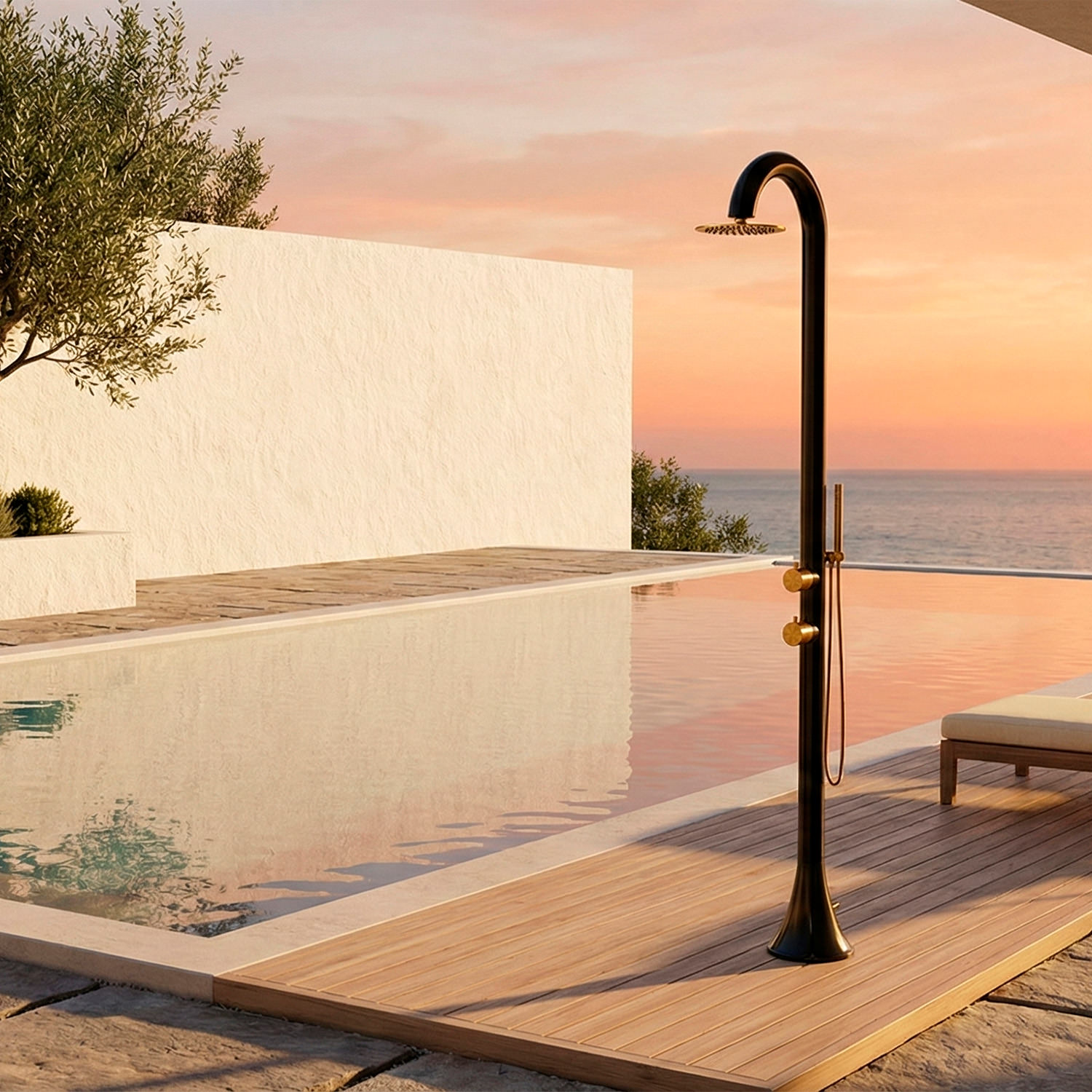 - 3-Versatilidad de uso: Las duchas SINED están diseñadas para adaptarse a diferentes entornos, no requiriendo exposición directa al sol. Esta característica las hace adecuadas para una amplia gama de espacios exteriores, aumentando su funcionalidad en diferentes contextos.